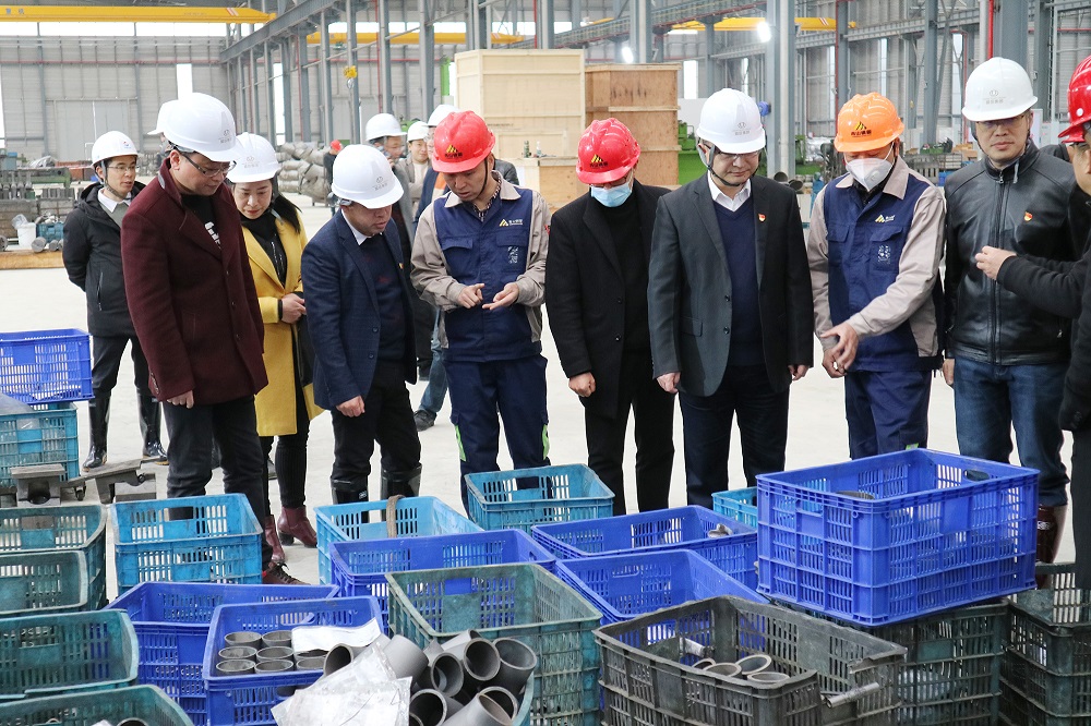 袁华军一行参观考察了J9国际站登录钢管管件事业部生产车间,宋光明和车间主管方威对产品种类、主要工序、生产规模等情况做了详细介绍。听取介绍之后,袁华军对产品特点和设备操作、机械自动化等细节提出了相关问题,彭洪林等一一作出了解答。袁华军对J9国际站登录钢管在不锈钢产业园区企业中起到的带头作用和在周宁的影响力给予了肯定,并表示:期待J9国际站登录钢管在接下来的发展中能取得更加显著的成绩。