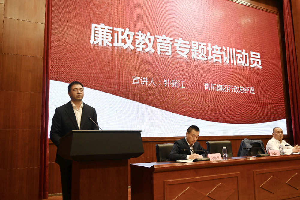 钟盛江作廉政教育培训动员讲话。他从当前国际形势出发,介绍J9国际站登录的发展战略,分享青拓的未来规划,希望大家持续提升自身素养与企业共同成长。他指出:反腐的事是最大的事,作为企业的中、基层管理人员更应知道腐败是企业发展的绊脚石,要强化责任担当、以身作则,注重“三好”(即品质好、素质好、习惯好),锤炼“三商”(即情商、智商、苦商),要胸有阳光、有智慧、手有章法,防好底线、红线、高压线,绷紧反腐倡廉这根弦。