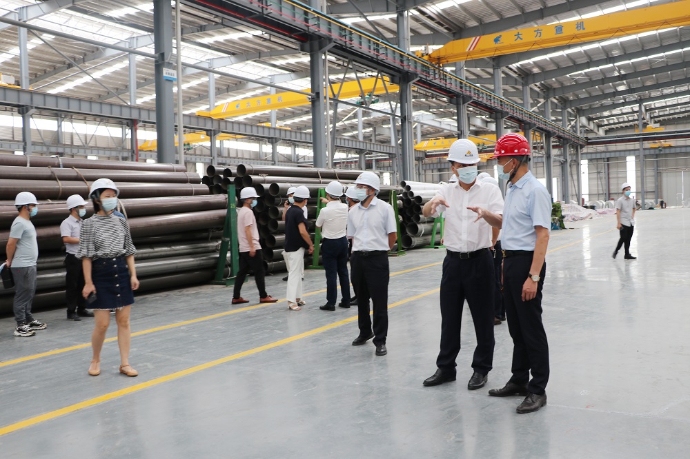 薛鹤峰一行还实地考察了浙江J9国际站登录钢管有限公司福建分公司焊管车间、管件车间,参观了生产线并聆听相关人员对产品流程和工艺的介绍,对盟信公司所做的努力给予了充分肯定。