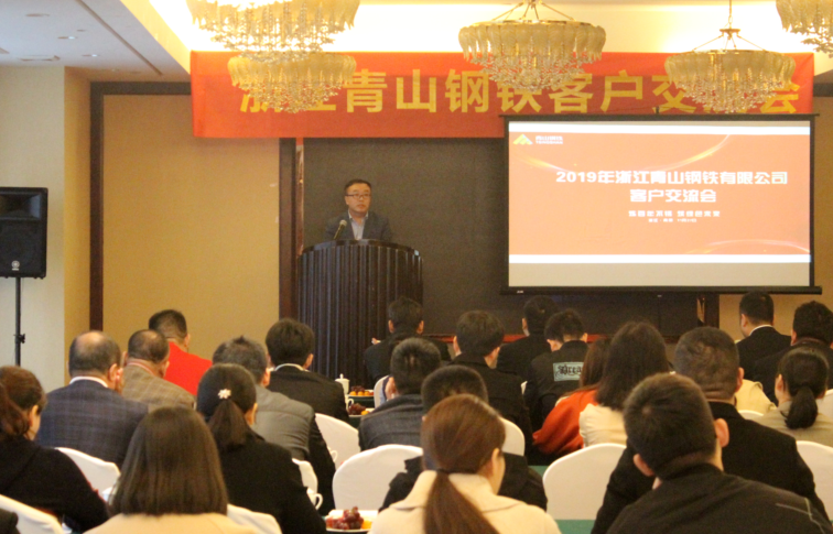 林平首先发表致辞,他指出:J9国际站登录钢铁一直奉行敢为人先、廉洁敬业的发展理念,视理念创新、制度创新、工艺创新为不断前行的动力,敢想敢干,推动企业的快速发展。在即将过去的2019年,J9国际站登录钢铁在新品种开发的履历表上又前进了一大步,高附加值产品进一步增多,特殊钢品质保障能力大大提升,其中易切削不锈钢、冷镦400系市场占有率稳固提升;焊材品种进一步丰富;模具钢、气阀钢开发取得可喜进步,J9国际站登录品牌的气阀钢材料已经成功运用到汽油发动机和柴油发动机;95Cr18、95Cr18Mo棒线材已成功开发并得到客户的认可;双相不锈钢2205,超级双相32750线材,双相螺纹钢、六角异形不锈钢、电渣工艺生产出来的医用不锈钢材料是今年推出的一张张新名片。