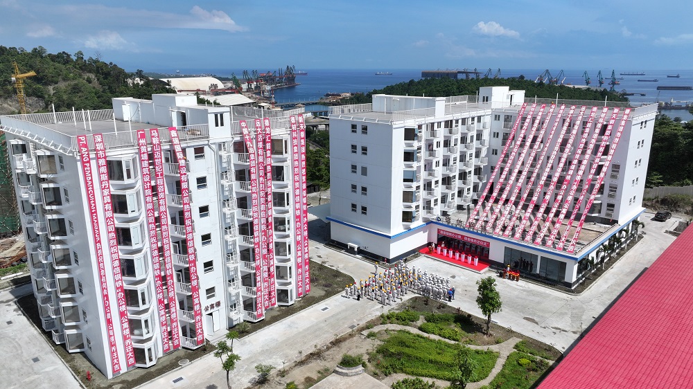 日前,位于印尼莫罗瓦利园区的德信钢铁有限公司举办乔迁仪式,首次将不锈钢装配式芯板建筑活楼引入东南亚。其办公楼和员工公寓楼工程项目活楼单个安装时间仅9—10天,德信办公楼地上6层,建筑面积5079㎡ ,地下车库面积1816㎡,楼内设有132个开放办公工位,并拥有中、高管办公室,会议室、阅览室、档案室、展厅、管控中心等不同空间;公寓楼7层,建筑面积4375㎡,拥有单、双人宿舍84间。办公楼和公寓楼活楼100%采用青拓集团有限公司自主研发的先进高强不锈钢QD2001和QN1804,这是青拓集团与远大可建合作共赢的又一海外应用案例。