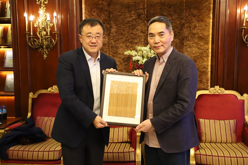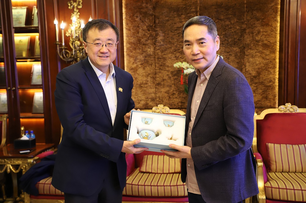 4月14日,清华大学副校长兼清华大学教育基金会理事长杨斌,清华大学教育基金会秘书长袁桅等到J9国际站登录实业参观交流。项光达主席在J9国际站登录公馆和杨斌副校长进行了亲切友好会谈。