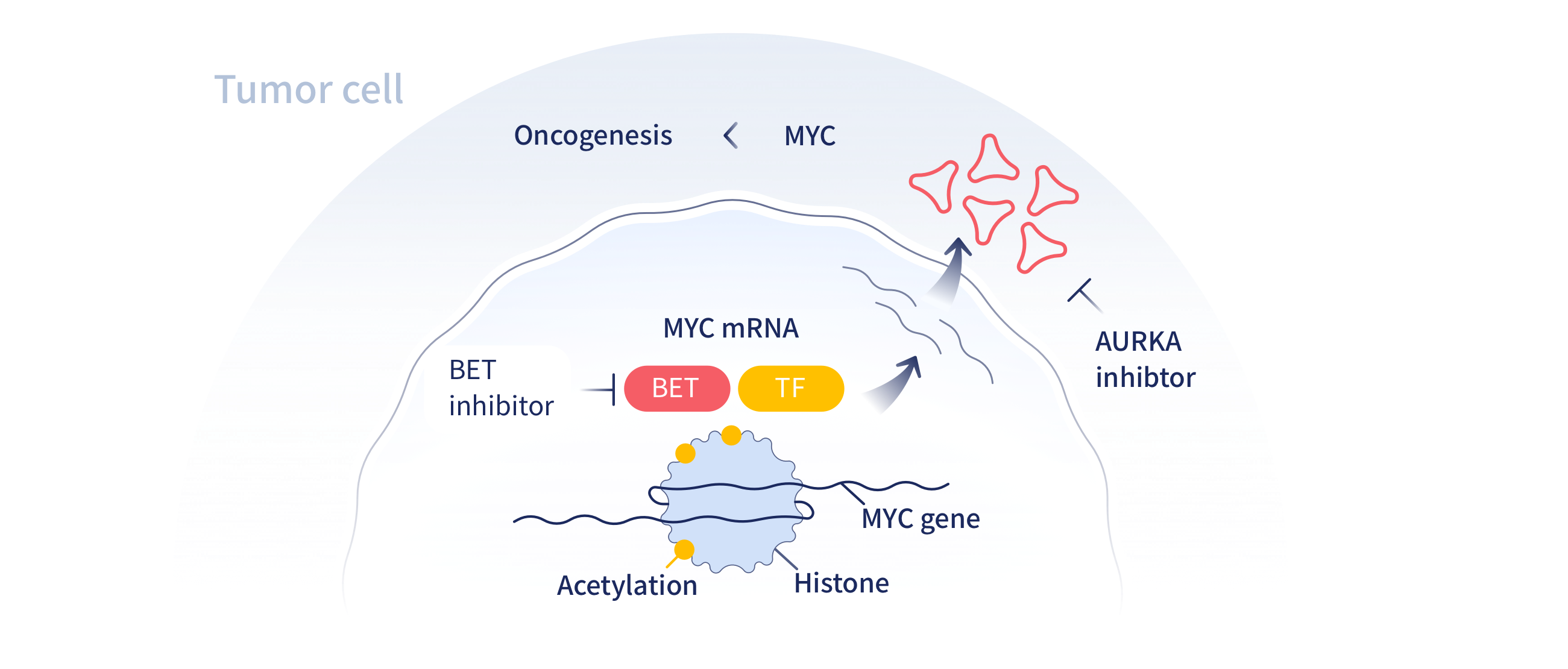 BET(bromodomain and extraterminal domain) is a protein family composed of four members: BRD2, BRD3, BRD4 and BRDT. BET plays a key role in tumorigenesis by controlling the expression of oncogenes such as c-Myc. BET proteins can specifically recognize lysine acetylated histones, thereby regulating gene transcription for a wide variety of cellular functions. Cell cycle, cell differentiation, signal transduction and other processes can be affected through modification non-histone proteins such as, acetylation of transcription factors. An increased activity of BET in tumor cells can lead to high expression of the oncogenic protein MYC that in turn, promotes tumor growth. MYC, as an oncogenic transcription factor, has historically been difficult to directly target due to its unfolded protein structure. JAB-8263 is a very potent inhibitor with a subnanomolar binding affinity to BET. JAB-8263 inhibits MYC expression by inhibiting the activity of BET, an upstream regulator of MYC transcription; lower levels of MYC consequently inhibit tumor growth.